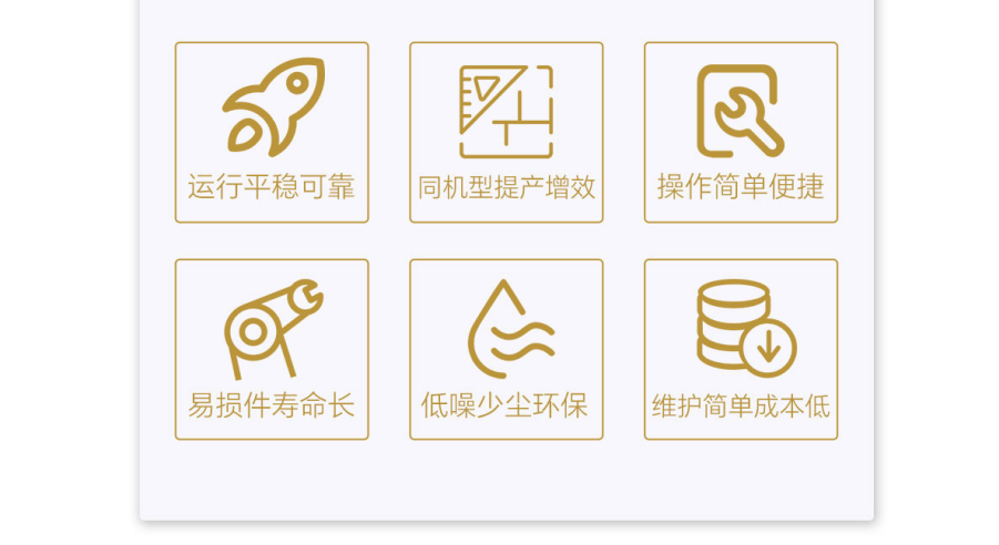 優(yōu)勢特點(diǎn):運(yùn)行平穩(wěn)可靠、同機(jī)型提產(chǎn)增效、操作簡單便捷、易損件壽命長、低噪少塵環(huán)保、維護(hù)簡單成本低